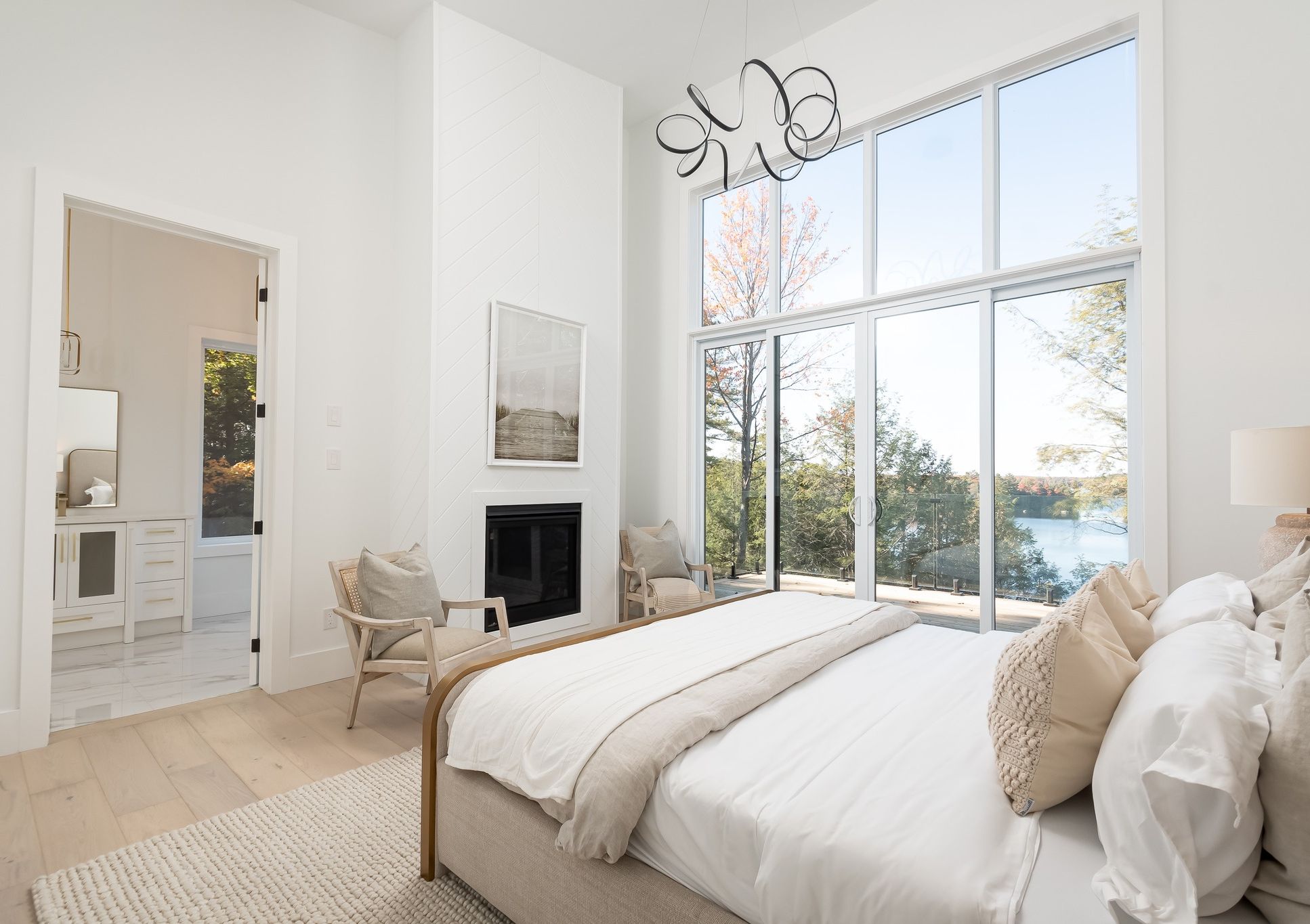 Executive newly completed year-round cottage offering 201 ft of shoreline on a wooded 2.37-acre lot with northwestern exposure on beautiful Wood Lake in Bracebridge! This opulent cottage showcases luxurious features & finishes across 3,962 sq ft of living space including 5 bedrooms & 3 bathrooms, with the perfect balance of indoor & outdoor entertaining spaces for the whole family to enjoy.